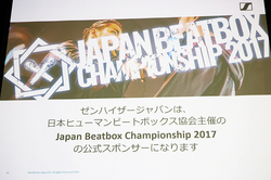 発表会には日本ヒューマンビートボックス協会代表の和田辰也氏が登壇。ヒューマンビートボックスは、楽器を一切使わずに口だけで音楽を演奏する表現の一つで、現在は世界90カ国、40万人以上のムーブメントになっているという。