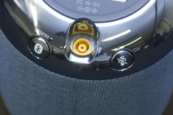 操作方式はGoogleアシスタントによる音声入力に加え、天板に内蔵された静電容量センサーにより手を近づけるだけで反応する「ジェスチャーコントロール」に対応。これも本機の大きな特徴だ。天板のソニーロゴ周辺で指をくるくると旋回させると音量調整、手のひらをサッと通過させると再生中楽曲の頭出し、といったように、本体に直接触れずに操作が可能。鏡面加工された本体下部にはBluetoothペアリングボタンとマイクミュートボタン、充電アダプター接続部を内蔵している。