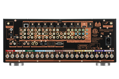 【SPEC】●搭載パワーアンプ数:11ch ●定格出力:140W+140W(8 Ω、20 Hz〜20 kHz、THD 0.05 %2ch駆動) ●実用最大出力:210W(6Ω、1kHz、THD 10%、2 ch駆動、JEITA)、250 W(6 Ω、1 kHz、THD 10%、1 ch駆動、JEITA) ●対応インピーダンス:4〜16Ω ●S/N比:102 dB(IHF-A、ダイレクトモード時) ●周波数特性:10 Hz〜100 kHz (+1、-3 dB、ダイレクトモード時) ●歪率:0.005%(20〜20 kHz、ダイレクトモード時) ●HDMI端子:入力×8(フロント×1を含む)、出力×3 ●映像入力端子:コンポーネント×3、コンポジット×5(フロント×1を含む) ●映像出力端子:コンポーネント×1、コンポジット×2(Zone2×1を含む) ●音声入力端子:アナログ×8(フロント×1を含む)、Phono×1、7.1ch入力×1、光デジタル×2、同軸デジタル×2 ●音声出力端子:11.2chプリアウト×1、ゾーンプリアウト×2、ヘッドホン×1 ●その他の端子:ネットワーク×1、USB(フロント)×1、セットアップマイク入力×1、Bluetooth/Wi-Fiアンテナ入力×2、RS-232C×1、DCトリガー出力×2、フラッシャー入力×1、マランツリモートバス(RC-5)入出力×1 ●消費電力:780W(待機電力 0.2W 通常スタンバイ/ 0.5W CECスタンバイ) ●最大外形寸法:440W×248H×460Dmm (ロッドアンテナを立てた場合) ●質量:17.4 kg