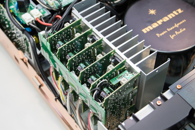プリアンプ部には、マランツの代名詞といえるハイスピード・アンプモジュール「HDAM」を用いた電流帰還型回路を採用。マランツがHi-Fiコンポーネントで培ってきた回路設計のノウハウを投入すると共に、プリアンプの心臓部には「HDAM-SA2」を用いることで、オペアンプを使用した場合に比べて約10倍のスルーレートを実現。上位Hi-Fiコンポーネントに匹敵する情報量や低歪を実現したとする。