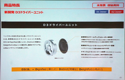 ドライバーには、新開発の11mm径「D3ドライバーユニット」を搭載。D3とはDignified(凛とした)、Distinct(明確な)、Delightful(心地よい)の頭文字で、同ドライバーによって細部までクリアな心地よいサウンドを実現するという。再生周波数帯域は8Hz〜52kHz。