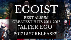 本日11月1日の12:00、公式サイトにてEGOIST初となるベスト・アルバム「GREATEST HITS 2011-2017 “ALTER EGO”」の発売が発表された。発売は12月27日で、CDとBlu-rayにオリジナルドッグタグをセットにした完全生産限定盤が9,500円、CD+Blu-rayの初回生産限定盤Aが4,500円、CD + DVDの初回生産限定盤Bが4,000円、CDのみの通常盤が3,000円(全て税込)。