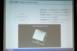 両モデルとも、Bluetooth再生に対応。LDACやaptX HD、AAC、SBCといった高音質コーデックによる再生が行える。またクロックは44.1kHz系と48kHz系の内部クロックに加え、10MHzの外部クロック入力に対応。会場ではOCXO搭載10MHzクロック出力専用マスタークロックジェネレーター「CG-10M」も合わせて展示された。