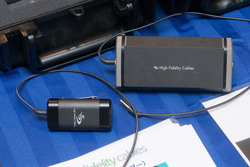 High Fidelity Cableは米国発のブランドで、音質改善アクセサリー「Trinity-Go」「Trinity Helix」を出展。ブースには米ZMF Headphonesのヘッドホン「Atticus」「Eikon」も出展していた。