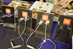 本日から開催されている「秋のヘッドホン祭り2017」。ハーマンインターナショナルのブースでは同社が取り扱うJBLやAKGブランドの製品が多数展示された。