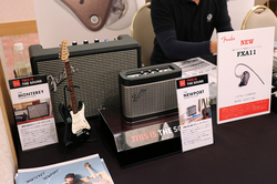 Fenderは、先日発表されたハイブリッド型イヤホンの最上位モデル「FXA11」(関連ニュース)をメインに、同ブランド全製品の試聴スベースを展開。ギターアンプのデザインをしたBluetoothスピーカー「MONTEREY」や「NEWPORT」(関連ニュース)なども展示している。