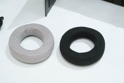 イヤーパッドに用いたマイクロファイバークッションは、音の反射特性とコストのバランスを考慮し、素材はELEAR、細かな穴はUTOPIAから継承。各モデルの特徴を組み合わせたようなかたちとなっている。