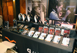 ローランドのブースでは、V-MODAのBluetoothヘッドホン「Crossfade II Wireless」や、AudioflyのBluetoothイヤホン「AF100W」などを展示していた。