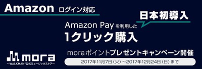 (株)レーベルゲートが運営する音楽配信サイト「mora」は、本日より「Amazon Pay」を利用した1クリック購入への対応を開始した。