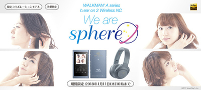 ソニーマーケティング(株)は、声優ユニット「スフィア」とコラボレーションしたハイレゾ対応ウォークマンとワイヤレスヘッドホン「We are SPHERE」モデルを本日から販売開始した。期間限定・数量限定で2018年1月11日(木)10時までの販売となる。