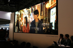 ソニーは、今年10月に受注を開始したばかりの8K対応カメラ「UHC-8300」の展示を行っていた。システム価格は4,800万円程度。新たに開発した1.25型の8K(7,680×4,320)CMOSセンサーを3板搭載するという豪華な構成を採用しており、最大8K/120pの撮影ができる。またBT.2020やHDR制作にも対応している。