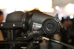 トータルラチチュードは15ストップ+で、8ポジションの光学式NDフィルターを内蔵している。色域はBT.2020やDCI-P3を大幅に上回る。会場では、本機に取り付けられる0.7型の有機EL採用EVFも見ることができた。