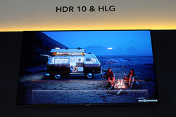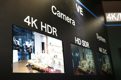 JVCは技術展示として、4Kカメラ「GY-LS300」を用い、DCIシネマ映像制作を行うというソリューションを紹介していた。DCI-P3の色域カバー率93.8%、面積比111.9%のJ-Log1モードを搭載。またJ-Log1映像をDC-X'Y'Z'とDCI-P3に変換するLUTファイルを開発し、DCPと同じカラースペースでグレーディングが可能となる。