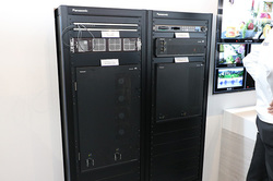 NECでは、HEVCの低遅延対応コーデックが目を引いた。エンコーダーの「VC-9700」とデコーダーの「VD-9700」で構成されており、サイズはハーフラックサイズ。H.265 Main 10@L5.2 High Tierに対応している。独自の低遅延技術を使用することで、フルHDの場合20msec(約1フレーム程度)、4Kの場合は99msec(約6フレーム程度)の遅延に抑えられる。画質も10ビットエンコード、クロマフォーマット4:2:2に対応している。なお、上記は低遅延モードの数値で、通常遅延モードの場合、遅延は500ms - 1000ms程度となる。