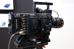 パナソニックはブース正面に2つのシネマカメラを展示。1つはVARICAM(バリカム)シリーズで、VARICAM 35やVARICAM LTなど、以前から展開している機種が置かれている。