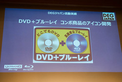 川合会長は冒頭挨拶にて、同組織がブルーレイディスクの普及のため行ってきた主な活動を紹介。毎年優れたブルーレイ作品を表彰する「DEGジャパン・アワード/ブルーレイ大賞」などのプロモーション、1つのパッケージにDVDとブルーレイをセットにして販売する「DVD+ブルーレイ コンボパック」の推進などをあげ、その成果として「2015年以降、ブルーレイがDVDの売上を上回っているのは世界でも日本だけとなった」とした。