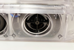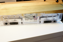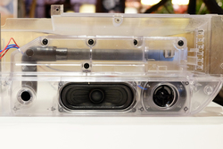 ディスプレイ部とスピーカー部は別筐体設計となっており、互いの振動などによる影響を排除。素材にはポリカーボネートと肉厚ABS樹脂の複合素材を使用することで高剛性を実現している。