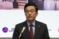 発表会には、サイネージを導入するJR九州エージェンシー代表取締役社長の小濱和彦氏、大日本印刷情報執行役員 イノベーション事業部事業部長の浅羽信行氏、LGエレクトロニクス・ジャパン代表取締役社長の李仁奎氏が登壇。LGの李氏は「日本の玄関口とも言うべき博多に、日本初となる最先端ディスプレイを設置することができ光栄に思う。これをきっかけに日本全国のパブリックな場所に、OLEDのデザイン性を活かして広まっていってほしい」と述べた。