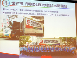 「サイズによって違う方式が必要なのは今後の有機ELパネル普及にとってネックになる。だが、印刷方式はひとつの方式ですべてのサイズを生産できる」と、印刷方式のメリットを説明した。