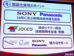 ただしテレビ向け大型有機ELパネルの実用化に際しては「いろいろと検討しているとしか言えない状況。必ずしも資本提携が前提ということではない」とのこと。技術提供を始めとした様々な方法でアライアンスを検討しているとした。また、アライアンスの相手としては「現時点では主にパネルメーカーを考えている」という。