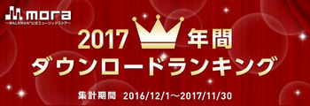 (株)レーベルゲートは、同社が運営する音楽ダウンロードサービス「mora」の、年間ダウンロードランキングTOP100を発表した。ランキングの集計期間は、2016年12月1日から2017年11月30日までとなる。