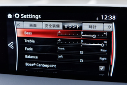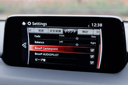 ここでスピーカーの説明をしておくと、CX-8のボーズ・サウンドシステムでは、10個のユニットが搭載されている。先述のトゥイーターは25mmのネオジム・トゥイーターで、左右のAピラーに各1基を装備。ダッシュボード中央には80mmの中高音域スピーカー×1、左右フロントドアには165mスピーカー×2、左右リアドアに130mmスピーカー×2、左右トランクサイドトリムに60mm中高音域スピーカー×2、そしてトランク下部に130mmリッチ・ベースウーファー1基という構成だ。