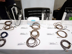 また地下1階には、オーディオテクニカのリケーブルコーナーも展示。A2DC端子対応のBluetoothリケーブルや、同じくA2DC対応のリケーブル各種を展示。同社のLSシリーズなど対応イヤホンを持ち込めば、リケーブルによる音の違いを楽しむこともできる。