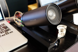 サーモスのブースでは、同社が展開するオーディオブランド “VECLOS” の製品を展示。魔法びんの技術を応用した「真空エンクロージャー」によるプロ・セミプロユーザー向けアクティブモニタースピーカー「MSA-380S」(関連ニュース)とともに、同製品のコンシューマー向けモデルとしてUSB-DAC機能搭載スピーカーを出展した。