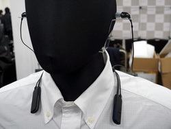 AVIOTブランドからは、先日のプレスリリース発表時に予告されていた通り(関連ニュース)、2018年2月に発売のBluetoothイヤホン「WE-D01a」を発売に先駆けて体験可能。ブースには開発にも携わった評論家の海上忍氏の姿もあった。