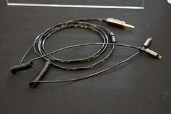 日本電子音響は、ケーブルの一部をカール形状として伸縮性をそなえたイヤホン用リケーブル「EXPAND-020」を出展した。MMCX端子タイプと2pin端子タイプを用意しており、価格は79,800円から。このカール形状を実現するために、線材から吟味を行い、新しいシース素材を用いたとのこと。カール形状になるとインダクタンスによる電気特性の変化が起こるため、カール部分の長さや径まで音質を踏まえて調整しているとのことだ。ミュージシャンなどプロ用ととして好評を得ているという。