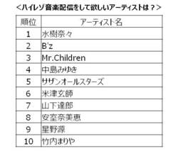 なお、moraでは2017年12月15日〜19日に『ハイレゾ音源配信して欲しいアーティストは?』というアンケートを実施。水樹奈々が1位となり、続いてB'z、Mr.Childrenと人気アーティストが続く結果となった。また、6位には米津玄師、さらに9位には星野源がランクインし、「ハイレゾ音源の認知が幅広い層にまで広がってきていることが推測できる」としている。