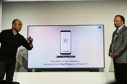 会場では、SmartThingsアプリを用いたデモを実施。アプリ上でセットアップすることで接続情報などがスマートテレビでも素早く認識され、Spotify上の音楽再生などスムーズな操作を実現している。