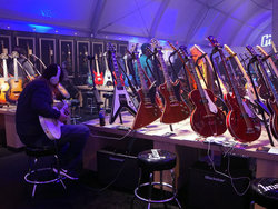 米国ラスベガスで開催されている「2018 International CES(Consumer Electronics Show)」。Gibsonブースでは多彩なギターを自由に試奏し、その音をフィリップスのヘッドホンで聴けるという展示が行われていた。