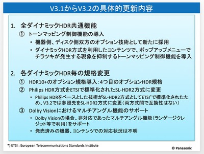またPhilipsのHDR方式が、「SL-HDR2」方式として、ETSI(European Telecommunications Standards Institute)で標準化されたため、バージョン3.2では参照先をSL-HDR2方式に変更した。