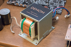 13ch分のパワーアンプを駆動する電源部も強力だ。13ch同時出力時にもクリーンかつ安定した電源供給を行うべく、専用のEIコアトランスを開発。コアサイズは111mm、積圧は90mm。質量はトランス単体で8.2kgにもなる。ちなみに9chアンプの従来モデル AVR-X7200WAのEIトランスは6.1kgで、これと比較してもその重さがわかる。