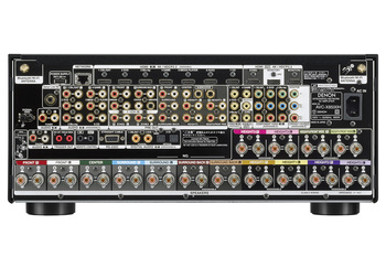 【SPEC】●搭載パワーアンプ数:13ch ●定格出力:150W+150W(8Ω、20Hz 〜 20kHz、THD 0.05%、2ch駆動) ●実用最大出力:260W(6Ω、1kHz、THD 10%、1ch駆動、JEITA) ●適合インピーダンス:4Ω〜16Ω ●HDMI端子:入力×8(フロント×1)、出力×3(モニター×2、ゾーン2×1) ●アナログ映像入出力端子:コンポジット入力×4、コンポーネント入力×3、コンポジット出力×2(モニター×1、ゾーン2×1)、コンポーネント出力×1 ●音声入出力端子:アナログ音声入力×7、フォノ入力×1、7.1ch入力×1、光デジタル入力×2、同軸デジタル入力×2、15.2chプリアウト×1、ゾーンプリアウト×2、ヘッドホン出力×1 ●その他の入出力端子:Denon Link HD×1、Network×1、フロントUSB×1、リアUSB×1(5V/1.5A 給電専用)、Wi-Fi/Bluetoothアンテナ端子 × 2、セットアップマイク入力×1、RS-232C×1、DCトリガー出力×2、リモートコントロール(IR)入出力×各1 ●外形寸法:434W×195H×482Dmm (アンテナを寝かせた場合、フット、端子、つまみ、アンテナを含む) ●質量:23.3kg