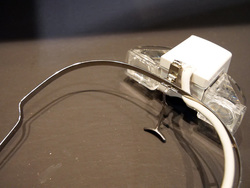 メガネスーパーが作ったウェアラブルディスプレイ「b.g.」を装着した。5月頃発売へ