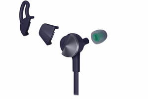 歩数、心拍数、消費カロリーなど、日常のさまざまなデータを記録する活動量計を販売している同社が、はじめて開発したBluetoothイヤホン。エクササイズ用として、雨、汗、水しぶきなどの水濡れなどを防ぐ疎水性ナノコーティングを備えている。