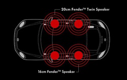 中音域用スピーカーにはデュアルボイスコイルを採用。こちらも200mm Fender Twinスピーカーと160mm Fenderスピーカーの2種類を搭載しており、高出力・大音量でも歪みが少なく音割れしにくい響きを実現したとしている。