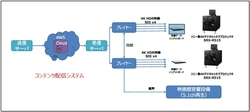 4K/HDRコンテンツ配信システムとして、映画上映用フォーマット(DCP形式)以外のコンテンツをイマジカ・ライヴ(イマジカ・ロボットの連結子会社)が構築したプラットフォームにて公衆回線を用いて、上映ファイルをダウンロードにて伝送。上映コンテンツは、AWS(Amazon Web Service)のクラウドに一旦格納され、公衆回線を使用し劇場の受信端末にファイルを蓄積し、その後指定した受信サーバーへ転送される。