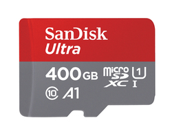 商品名は「サンディスク ウルトラ プレミアム エディションmicroSDXC UHS-Iカード 400GB」。40時間分のフルHD動画を保存でき、100MB/秒の超高速な転送速度を実現している。またこの転送速度は、平均3.5MBの静止画を、1分間当たり最大1,200枚転送できるスピードとなる。