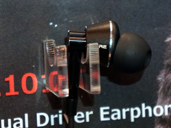 1moreは、デュアルドライバー搭載イヤホン「E1017」を参考展示。10mm径ダイナミックドライバーとBAドライバーをハイブリッドで搭載したモデルで、ダイナミックドライバーにはグラフェン振動板を同ブランドとして初めて採用した点も特徴のひとつ。