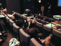 会場は秋葉原の駅近く、富士ソフトアキバビルにあるアキバシアター。THX認証を取得した、映画の関係者試写会などに使用される本格的なシアタールームだ。ホームシアタープロジェクターの中でも小型のHT2550を視聴する場所としては破格に大きな会場だ。受付開始と同時に訪れる方もいらっしゃるなど、熱心な読者が多く集まった。