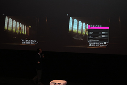 視聴時には市販のパッケージソフト以外にも、BenQのデモ映像が流された。ここではスマートフォンでの写真撮影も可能となり、参加者が熱心に写真や動画に収めていた。