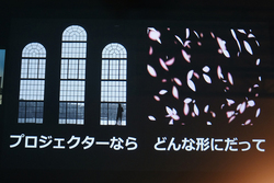 そしてそのメリットとして「映像では文字よりも多くの情報を短い時間で伝えられるだけでなく、多くの人と思いや感情を共有できる。いま、街の中には映像が溢れ始めているが、ディスプレイではサイズに制限があり、大画面の実現にコストが掛かる。プロジェクターであれば、圧倒的な大画面を実現できるほか、非平面へも投写でき、かつどんなかたちでも映し出せる」とアピールした。
