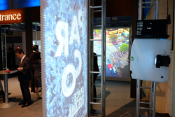 投写角度は360度自由に変更でき、壁・天井・床などさまざまな場所への設置が可能。店舗や飲食店などレイアウト変更が多い場所でも優れた設置性を確保すると共に、様々な場所において映像による新しい空間演出を行うことを想定しているという。