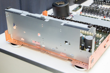 また、メインシャーシには銅メッキを施し、さらに独自のグランドラインを設けるなどして低インピーダンス化も徹底。基板やシャーシを固定するビスやワッシャーの種類を使用する箇所に応じて変更することで、インピーダンス調整を行うというノウハウも用いられている。低インピーダンス化によってグランド電位を安定させて、低ノイズかつ揺らぎの少ない音質が実現できるという。