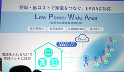 家電を簡単にネットワークにつなぐ新しい構想としては、省電力広域無線通信技術(LPWA)を活用する。「家電の進化として求められるのは、IoTであらゆる家庭をネットワークにつなぎ、新しいサービスを提供すること。しかし家電をどうネットワークにつなげるかがネックとなっている。そこで、電源を入れるだけでネットワークに接続できるLPWA技術を活用する」と説明した。これについてはNTTドコモとともに、2018年秋を目処に実証実験を開始する。