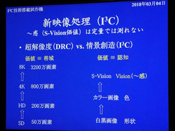 このように、4Kでも2Kでも映像ソースを問わずに効果を得られること、そのほか倍速駆動パネルでなくても早い動きの映像にも効果を発揮することも同社技術の特徴だと近藤氏はコメント。I3CおよびS-Visionをあらためてアピールした。