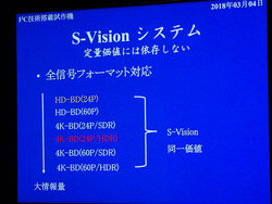また、当日は映画ソースでもデモ。2K BDを今回の試作機でアップコンバートおよびS-Vision効果をオンにした映像と、UHD BDとの比較上映を行い、爆発シーンでの炎のディティール表現などにも効果を発揮することなどを紹介した。